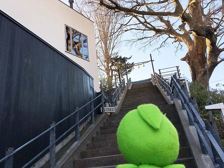 右の石段を上がっていくんら♪