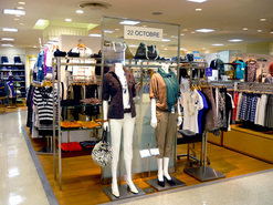 お店の壁がピンクなのと特徴的なマネキン人形ちゃんがちょっと個性的ですが(笑)…カワイイ服がいっぱい揃ってます。バンバン着まわせそうなベーシックなカットソーやニットには「ネックレス」が付いてるものもあってオトクです。今の一番のオススメは、ワンピースみたいにキレイなラインのコートです。